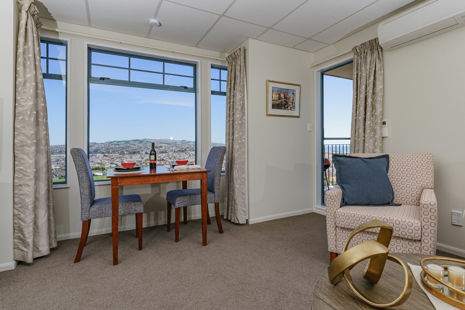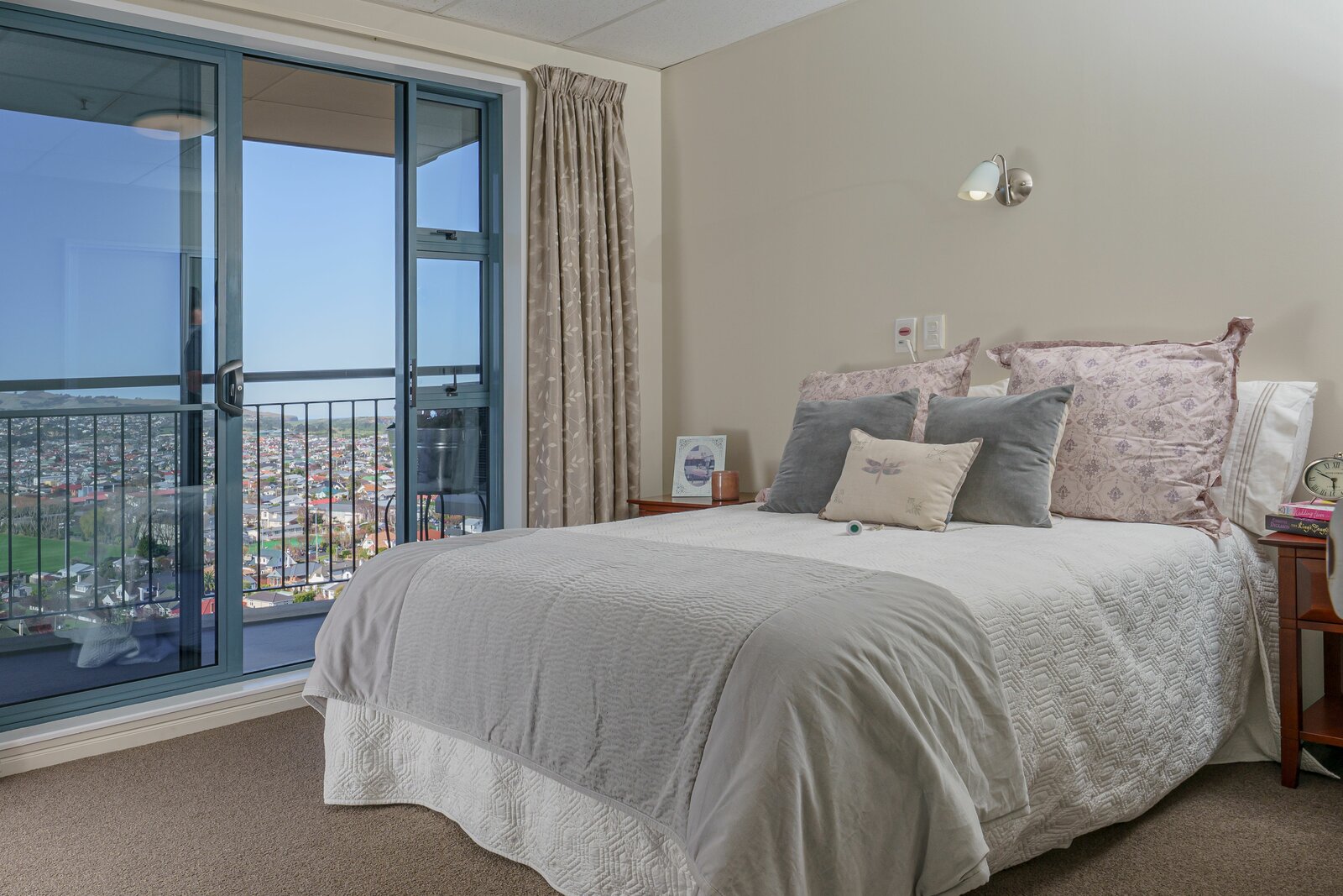 Located in St Clair, Frances Hodgkins Village is perfectly positioned to capture the sun, and enjoys magnificent views over the city, the harbour, Forbury Park and down to St Clair beach.